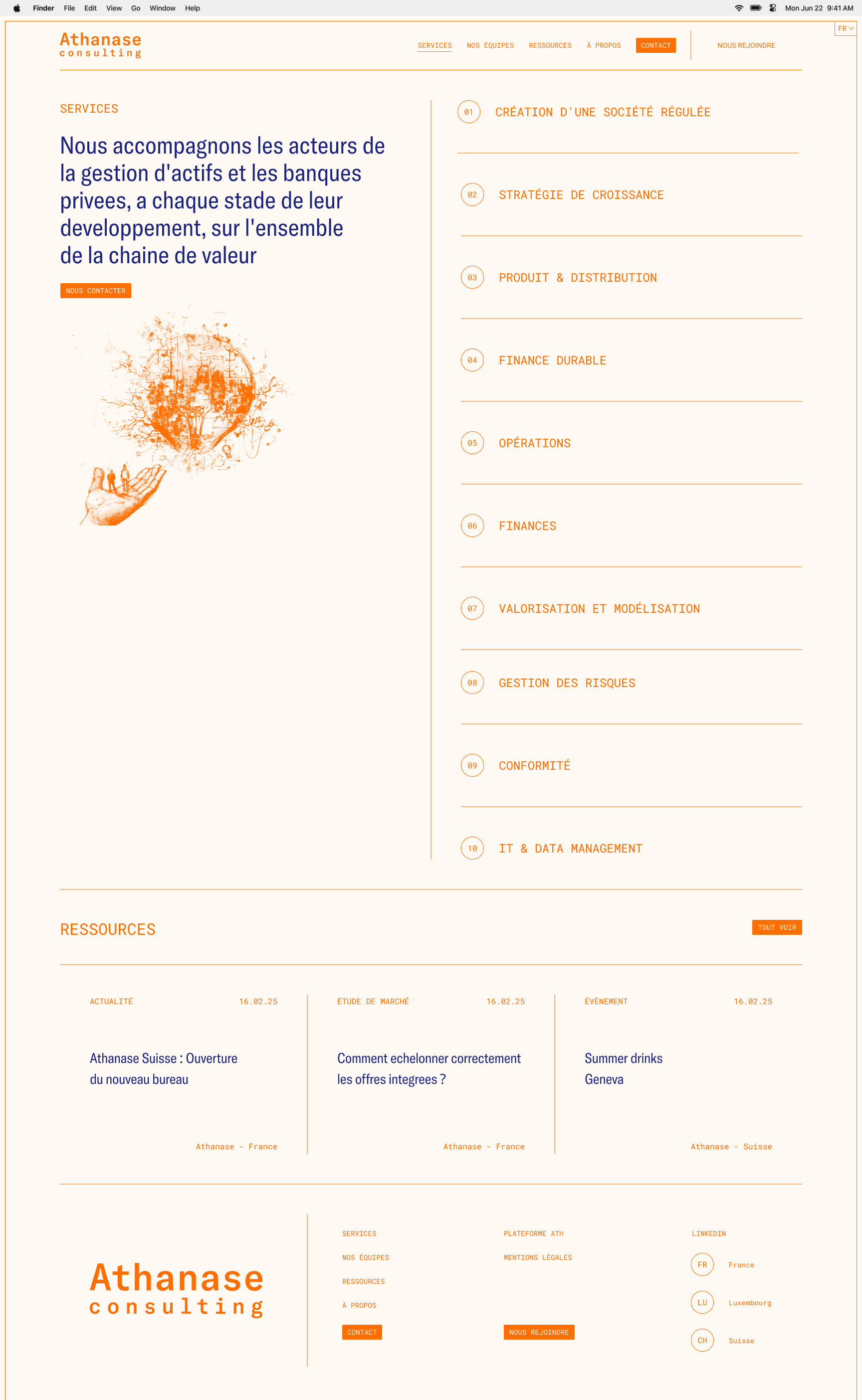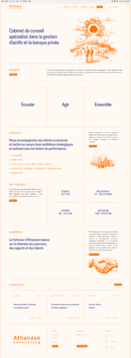Refonte de l’identité visuelle Athanase Consulting. Création, développement et intégration du nouveau site du cabinet.